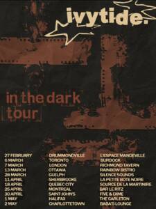 ivytide is an indie pop band from montreal, canada. founding members, nathan gagné (vocals, guitar), jamie snytte (guitar) and kyle ruggiero (bass) met at a recording studio, where they started to develop a chemistry in their songwriting. a mutual love for lo-fi indie music led to the production of bedroom pop songs with intricate, but catchy melodies, which float on top of well thought-out instrumentation.