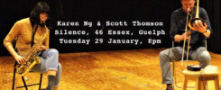 She is exhibiting artwork resulting from her experience of attending the Monday Morning Improv Music Sessions at Silence. There she attends, not as a musician, but as an artist. With a small sketchbook, watercolour pencils, brush, and water, Westfall sketches the actual sounds that she hears, as the music is being played ‘live’. Each sounds corresponds to a specific colour, while the rhythms of the music provide the texture, shape, and line combinations. She also records each session on her IPhone. Later in her studio, Westfall creates both large and small watercolours.